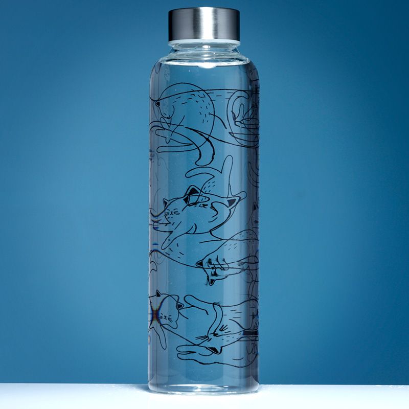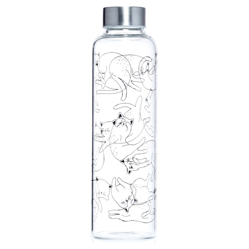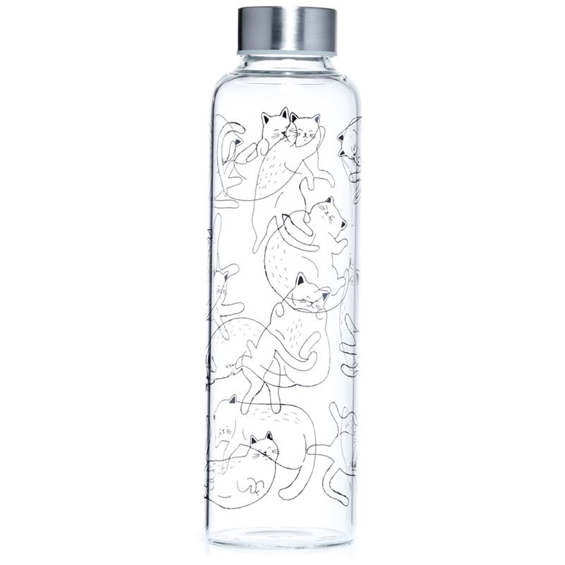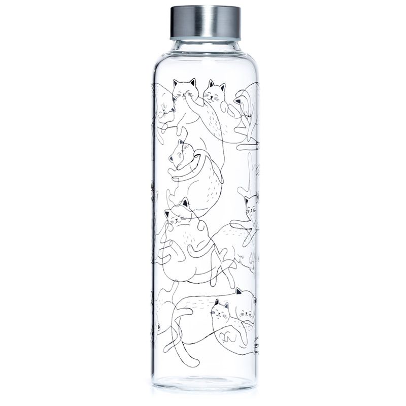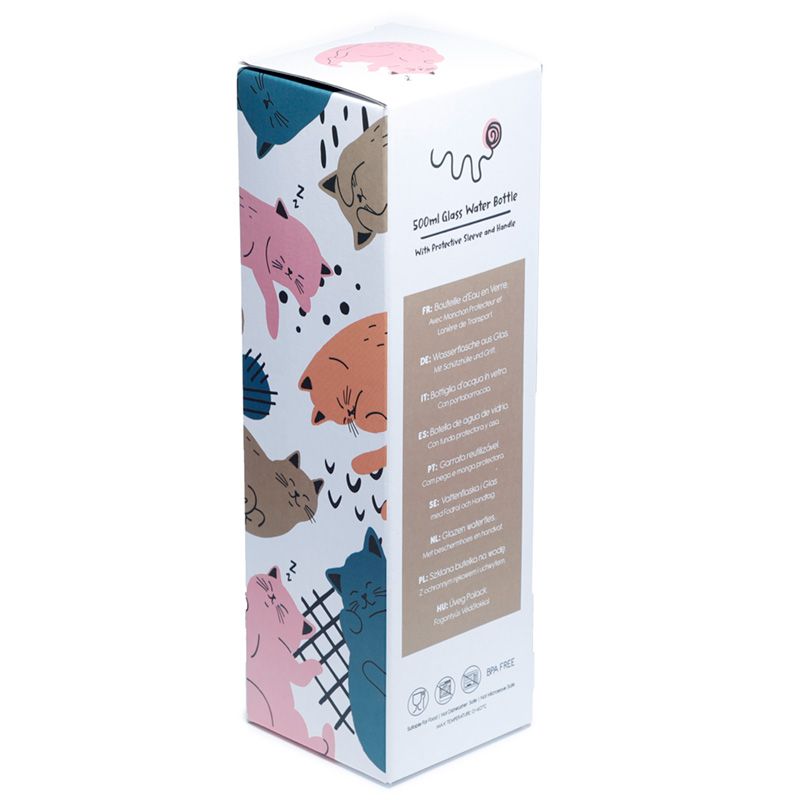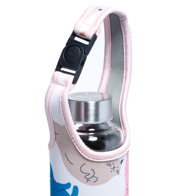 Bouteille d'Eau en Verre (Gourde) 500ml avec Manchon à Sangle de Transport Cat's Life - Chat