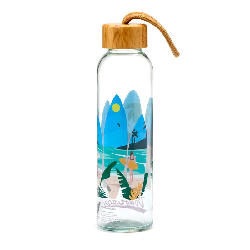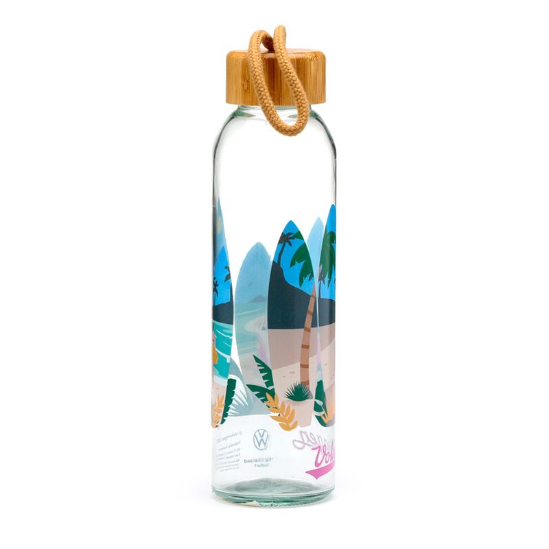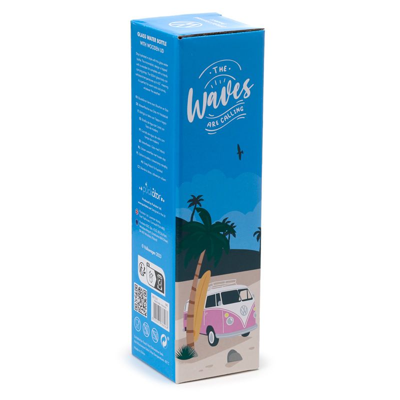 Bouteille en Verre (Gourde) 500ml avec Bouchon Bambou - Volkwagen- Van Bus Combi VW T1 The Waves are Calling