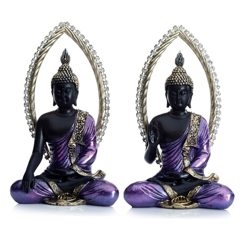 Figurine Bouddha Thailandais Noir & Violet - Meditation