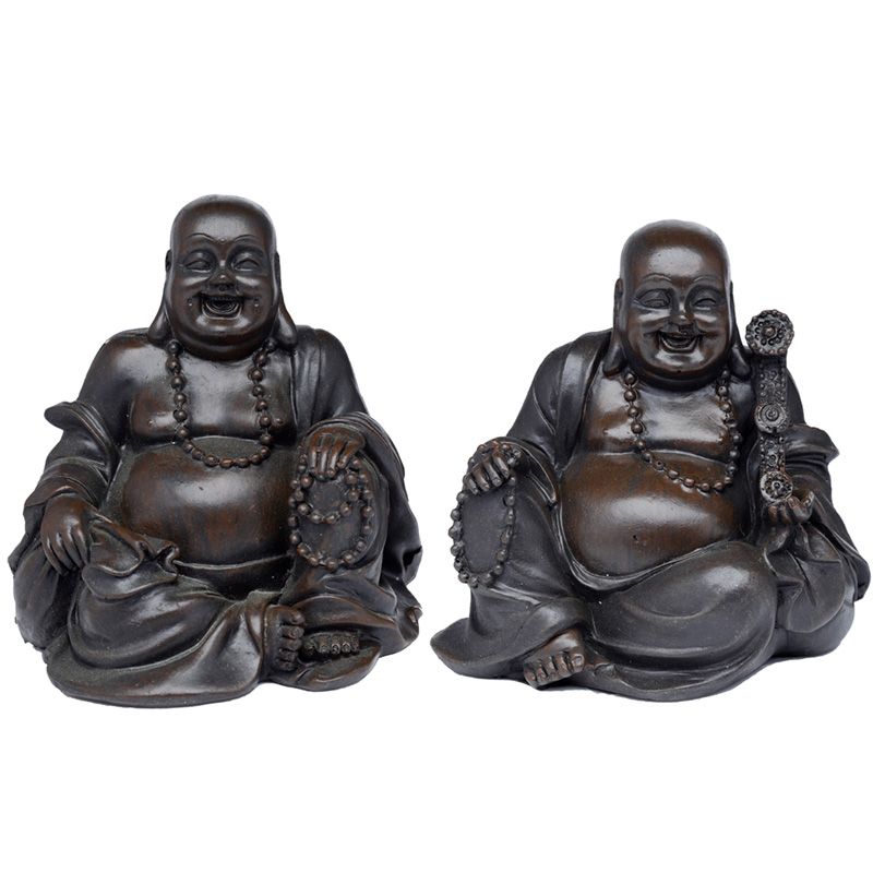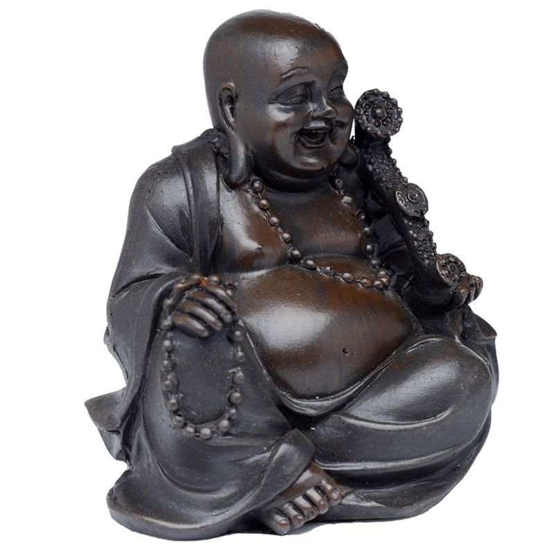 Figurine Effet Bois Brossé Peace of the East - Bouddha Porte-bonheur