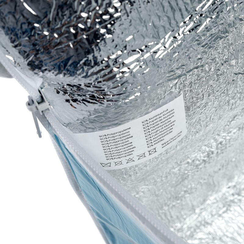 - Composition: Plastique Provenant de Bouteilles Recyclées rPET, Aluminium, Mousse EPE et Poignées en Polypropylène