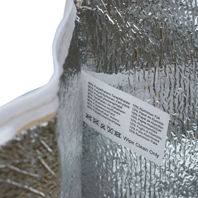 - Composition: Plastique Provenant de Bouteilles Recyclées RPET, Aluminium, Mousse EPE et Poignées en Polypropylène
