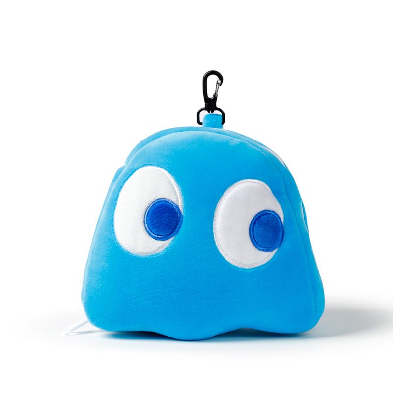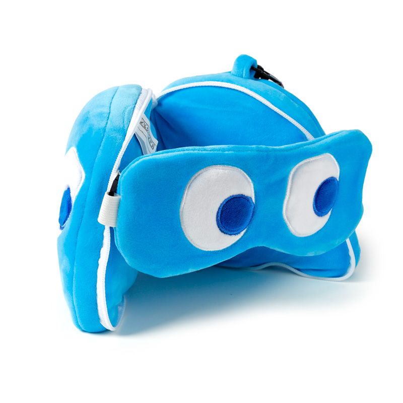 Coussin de Voyage Relaxeazzz Peluché 2-en-1 avec Masque Yeux Pac Man - Fantôme Bleu