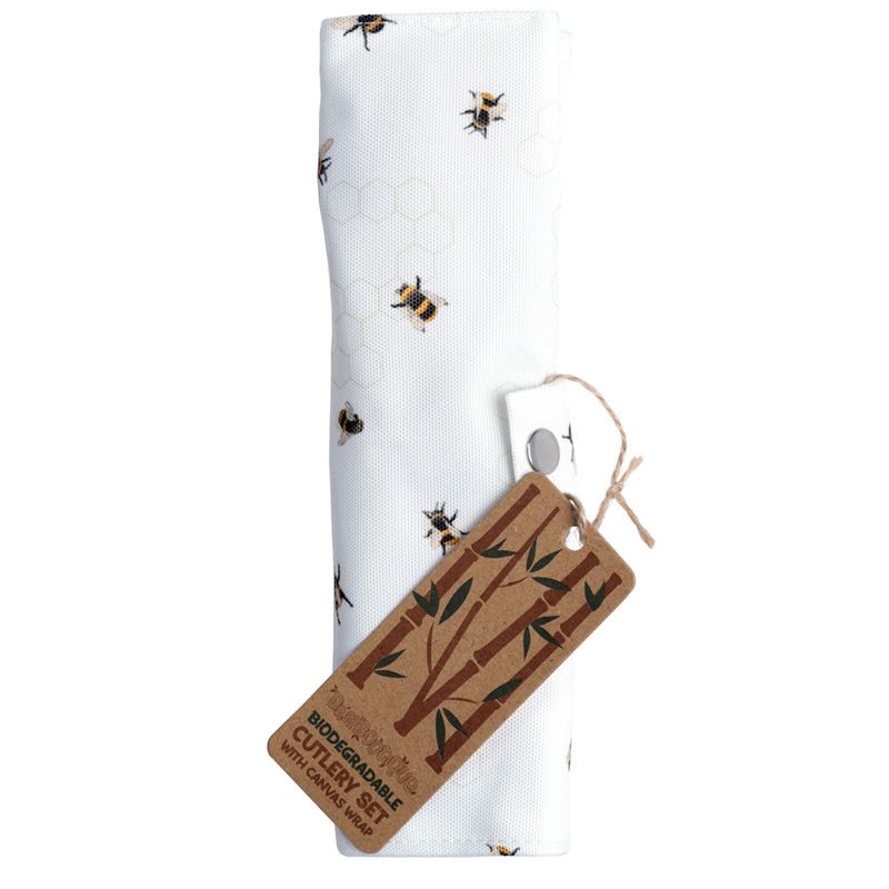 Ensemble 6 pièces 100% Bambou Couverts & Pochette de Rangement Nectar Meadows - Abeille