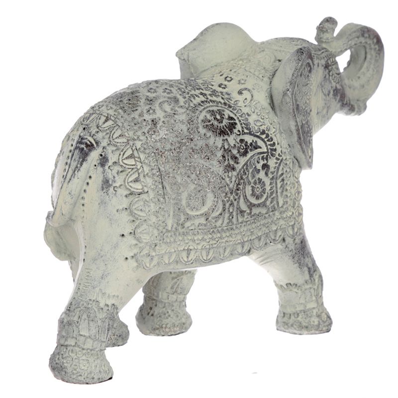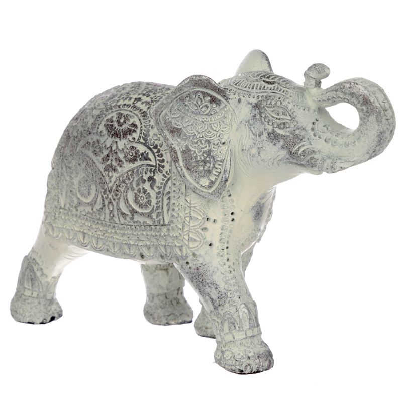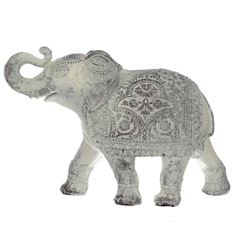 Figurine Elephant Thailandais Sculpté à Pâtine Blanche