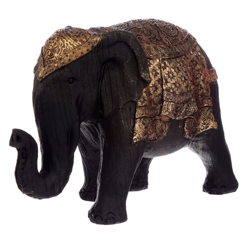 Figurine Elephant Thailandais Pâtine Noire & Dorée (Moyenne)