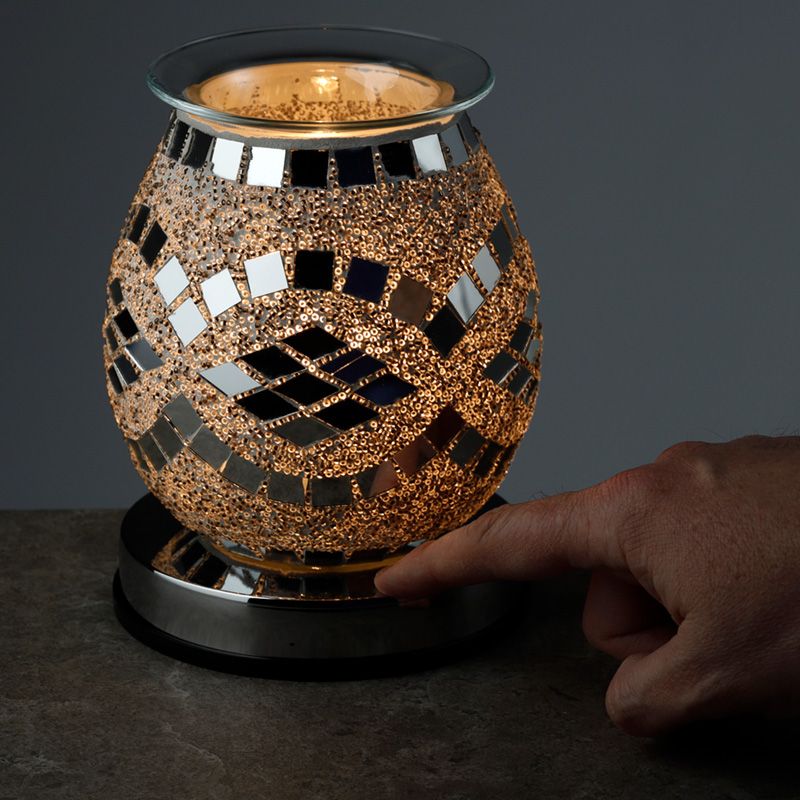 Diffuseur Electrique Lampe Aromatique Tactile pour Fondant de Cire - Mosaïque Effet Diamant Miroir (Prise Européenne)