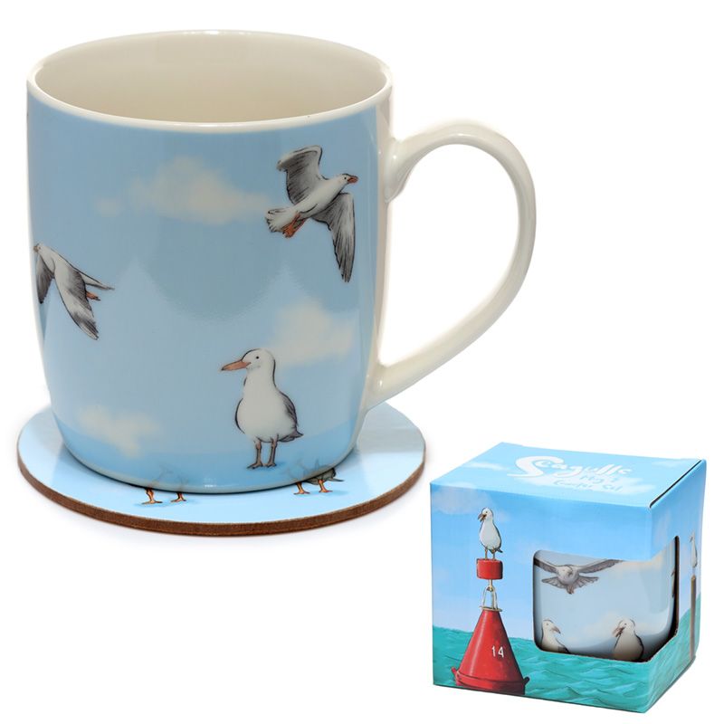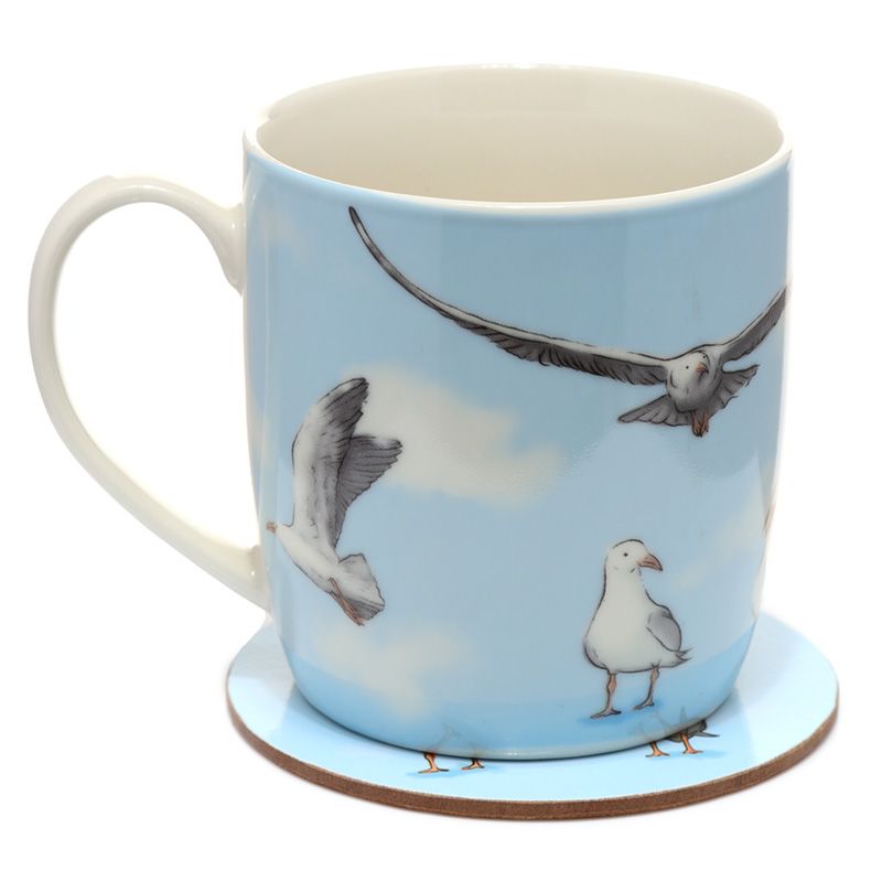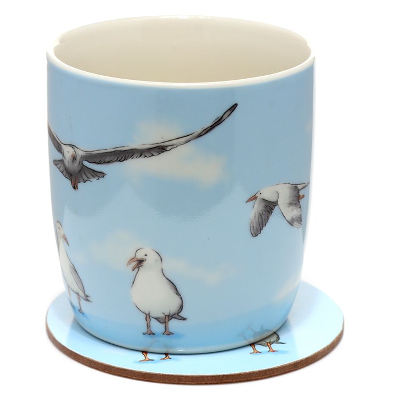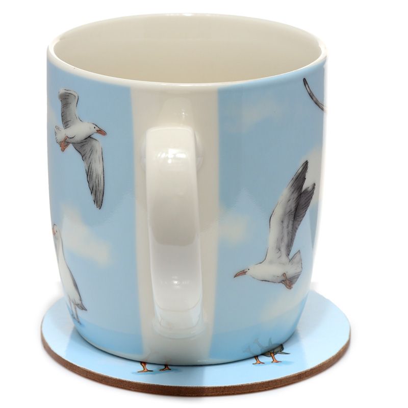 Ensemble Mug Porcelaine & Dessous de Verre Mer - Mouette et Bouée