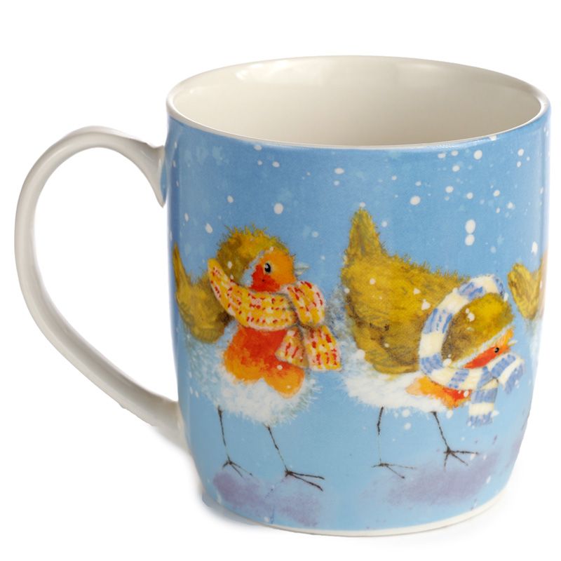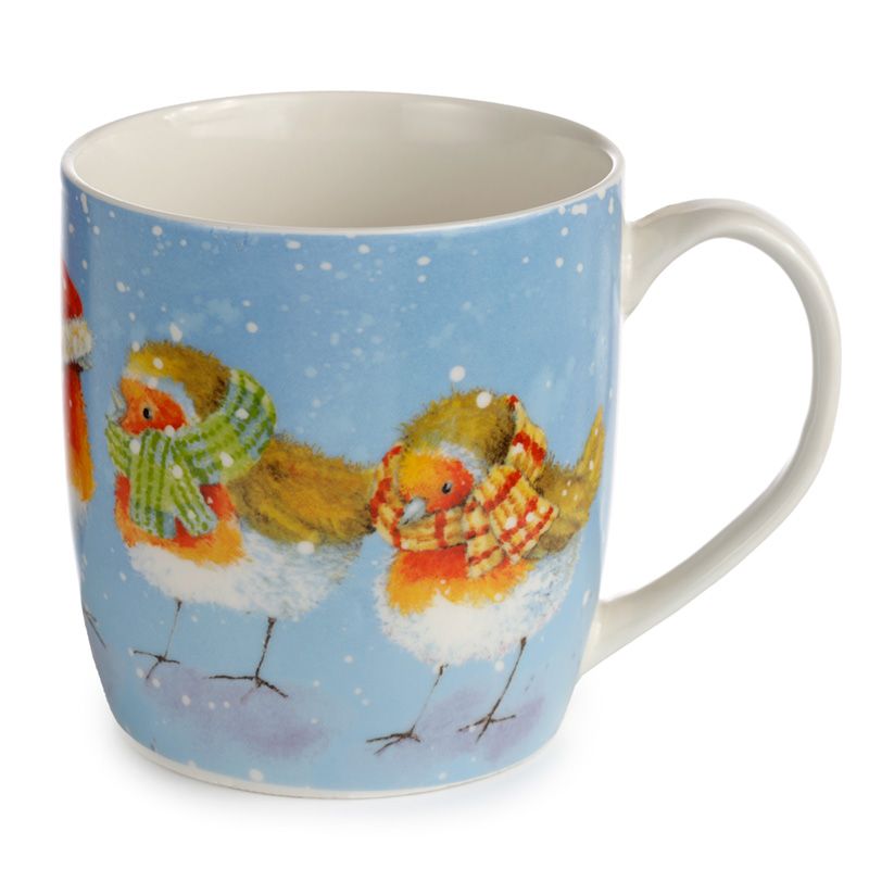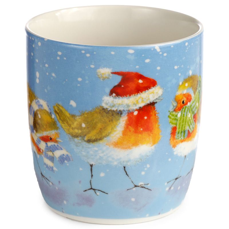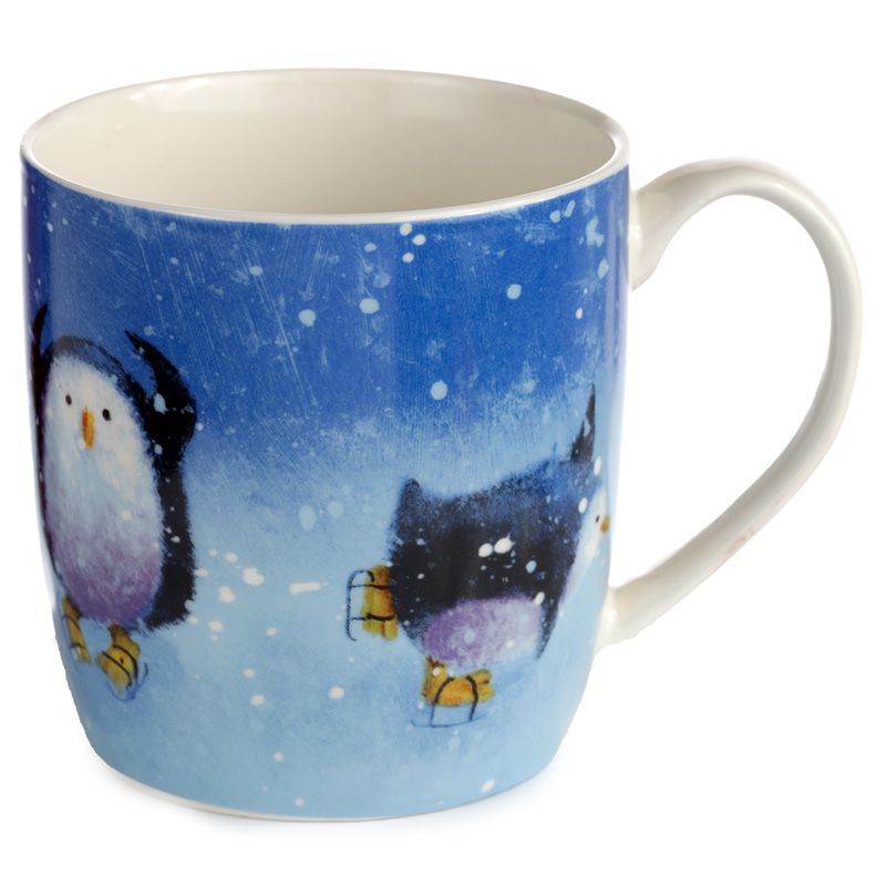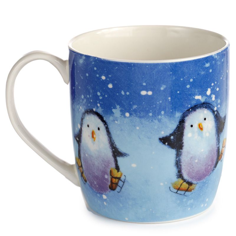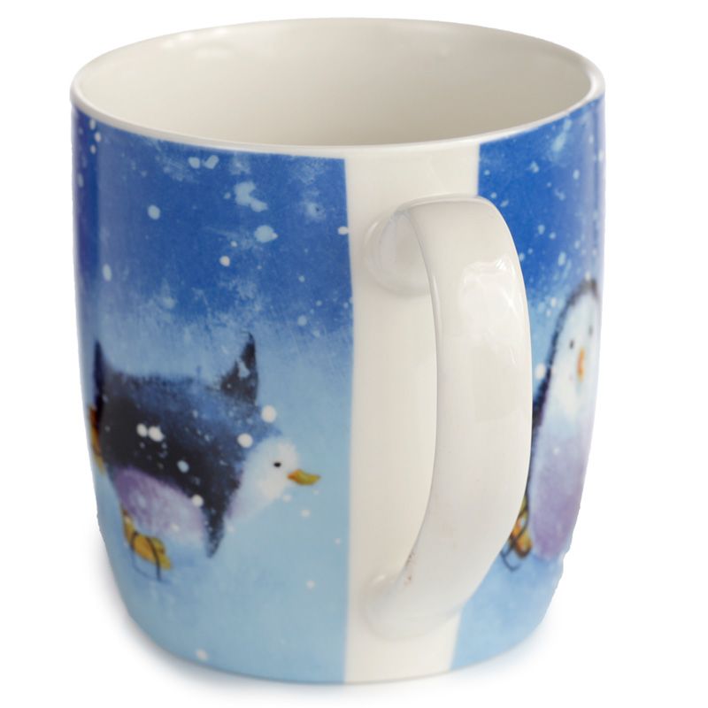 Ensemble 2 Mugs Porcelaine de Noël Jan Pashley - Oiseau Rouge-gorge et Pingouins à Patins