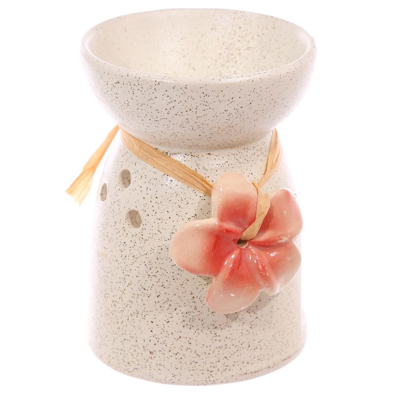 Brûleur à huile céramique moucheté - Crème avec fleurs