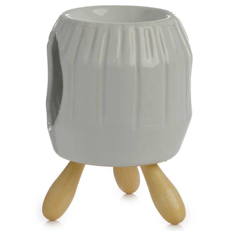 Brûleur à Huile en Céramique à Pieds - Blanc Texturé