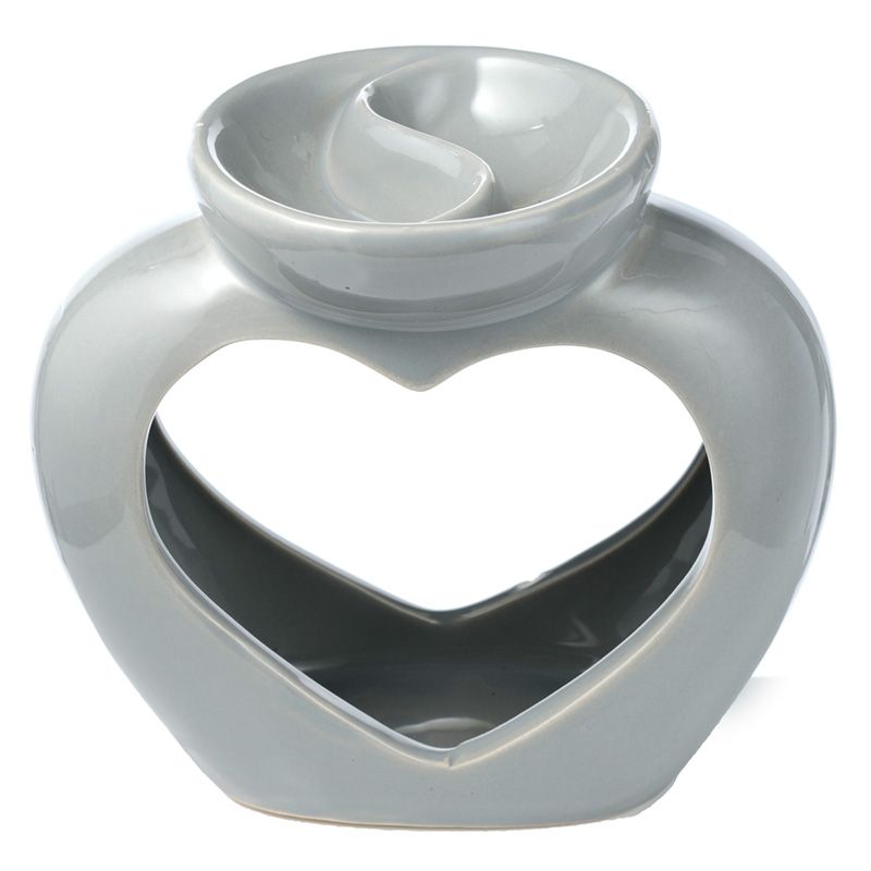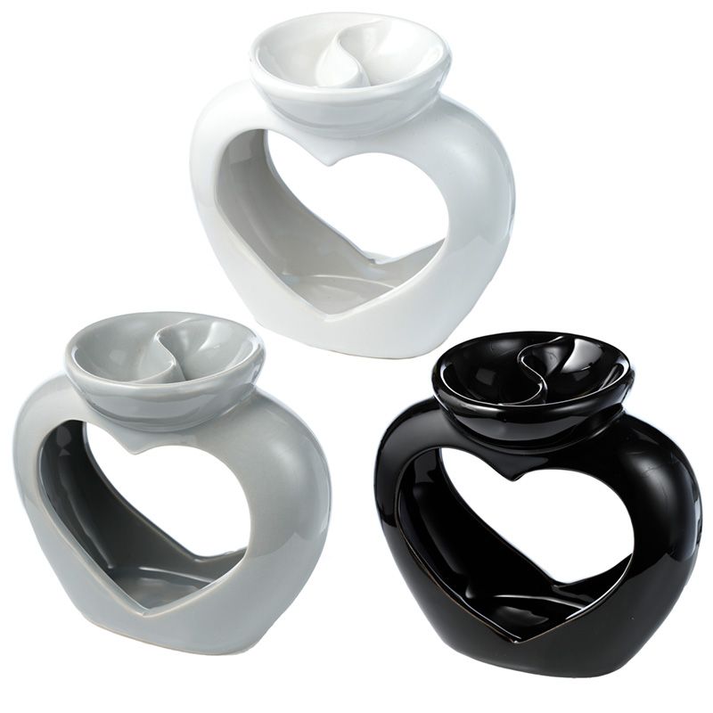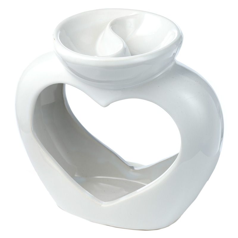 Brûleur à Huile & Fondant de Cire en Céramique - Cœur avec Séparateur de Parfums