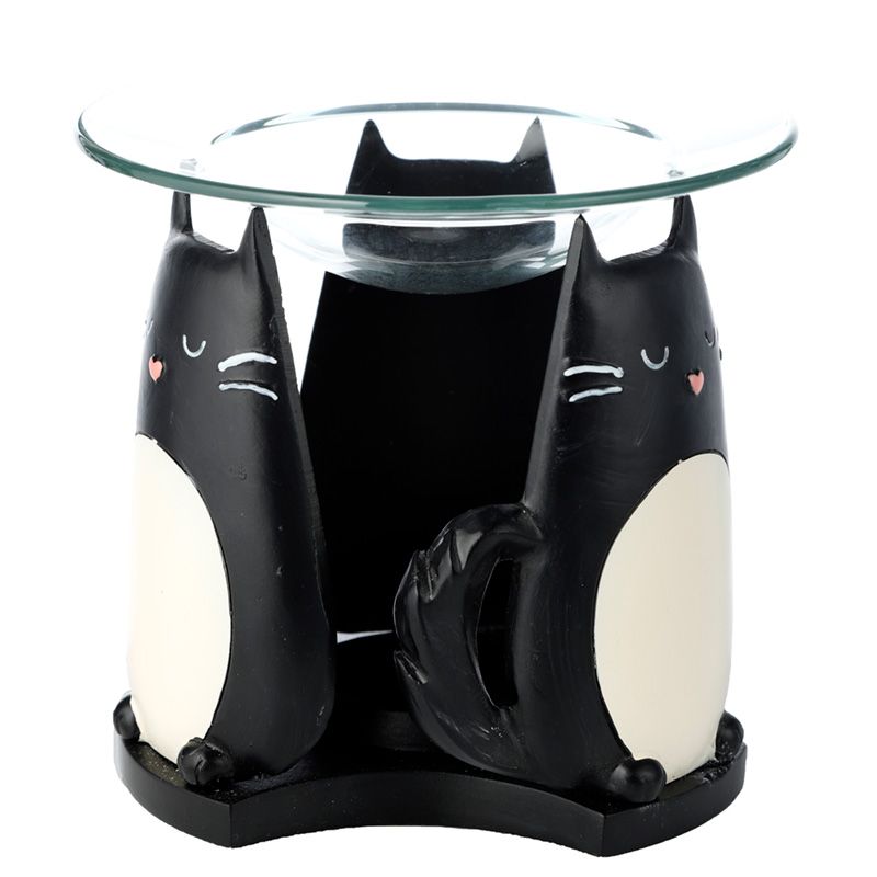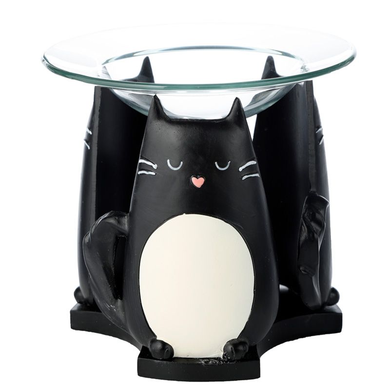 Brûleur à Huile & Fondant de Cire en Résine avec Coupelle en Verre Feline Fine - Chat