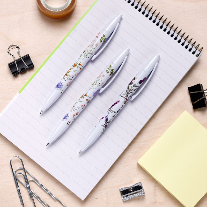 Lot de 3 Stylos en plastique recyclé (RABS) The Nectar Meadows - Abeille et Fleurs