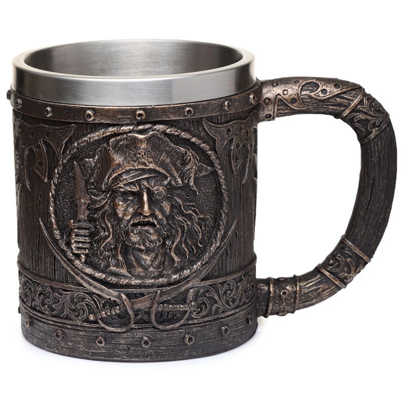Chope Décorative Pirate Effet Bois Brossé & Patine Dorée