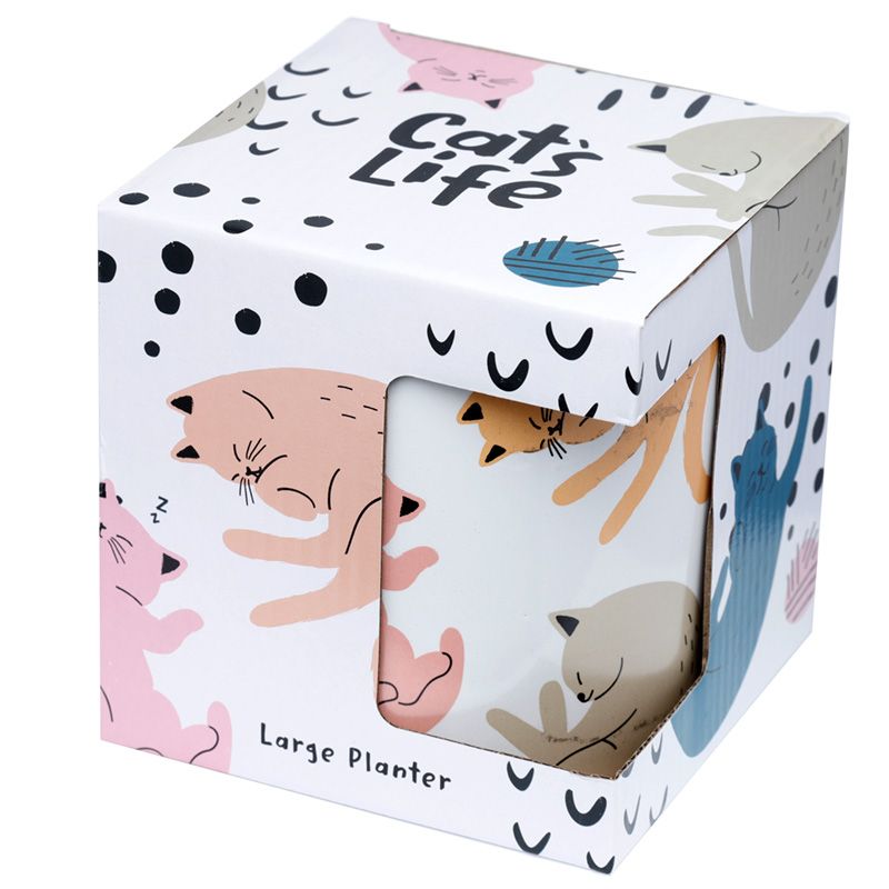 Pot en Céramique pour Plante d'Intérieur Cat's Life - Chat (Grand)
