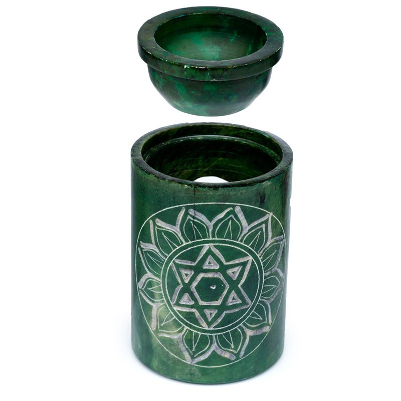 Brûleur à Huile Chakra - Pierre Stéalite Verte Scultée