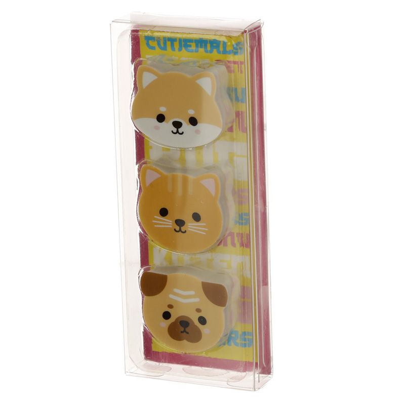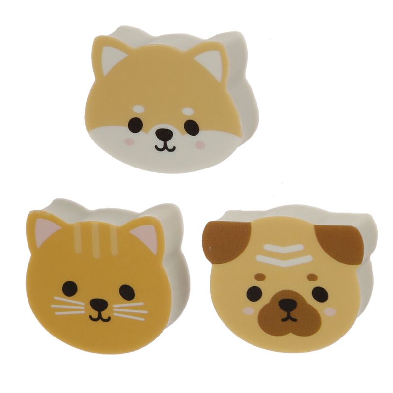 Lot de 3 Gommes - Carlin, Chat, Shiba Inu