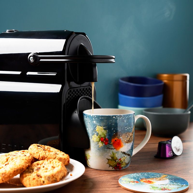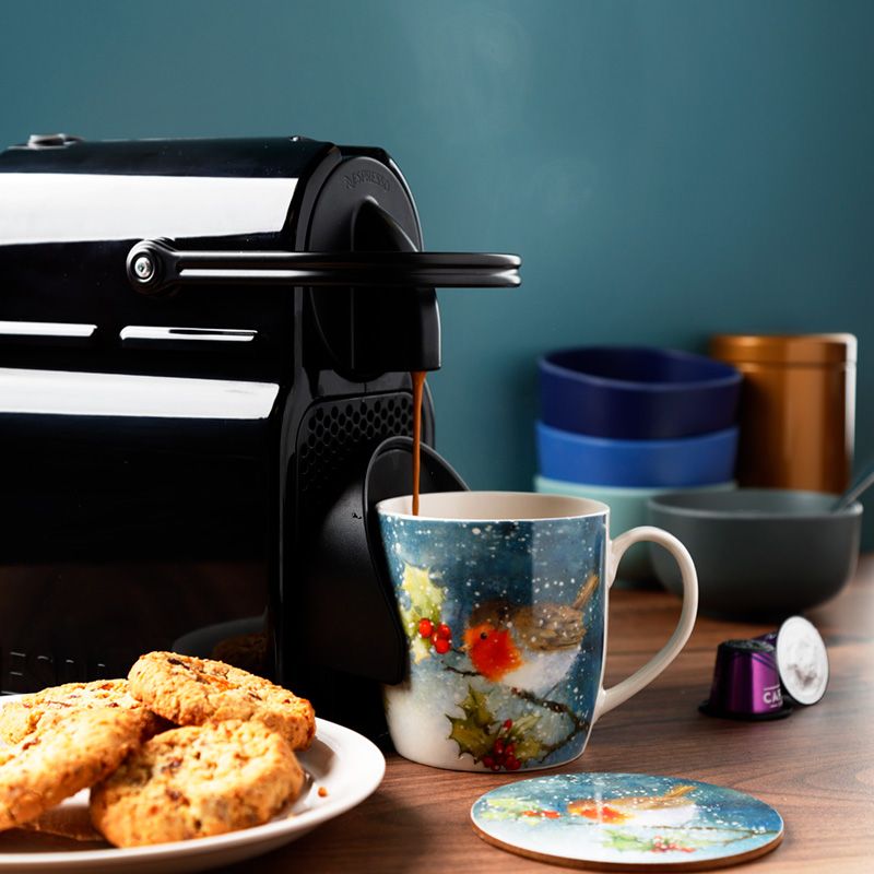Ensemble Mug Porcelaine & Dessous de Verre Jan Pashley - Rouge-gorge de Noël